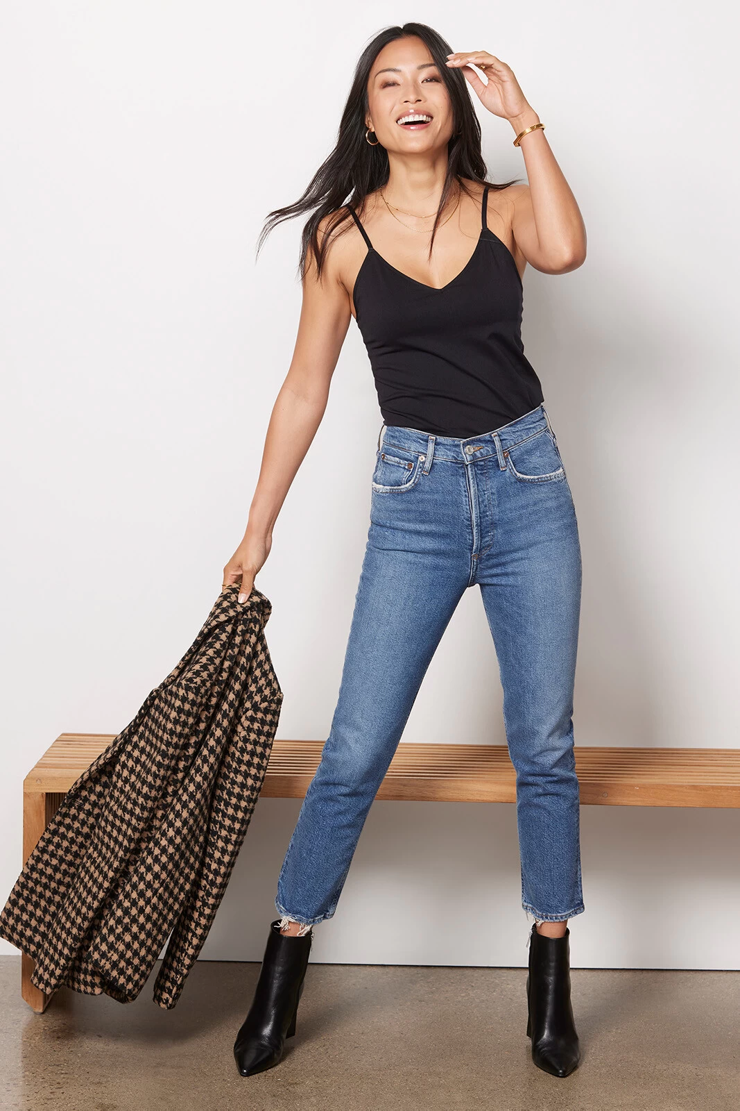 Round out your basics collection with this seamless cami by Z Supply. Perfect alone or as a base layer, this v-neck cami features a built-in shelf bra and adjustable spaghetti straps.