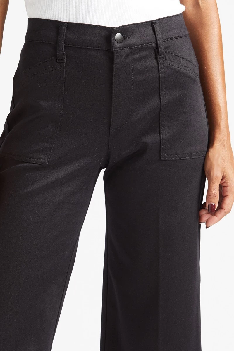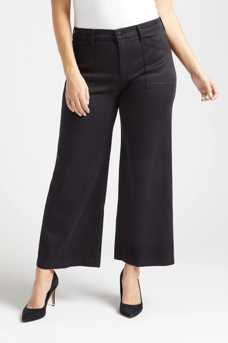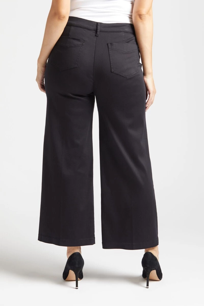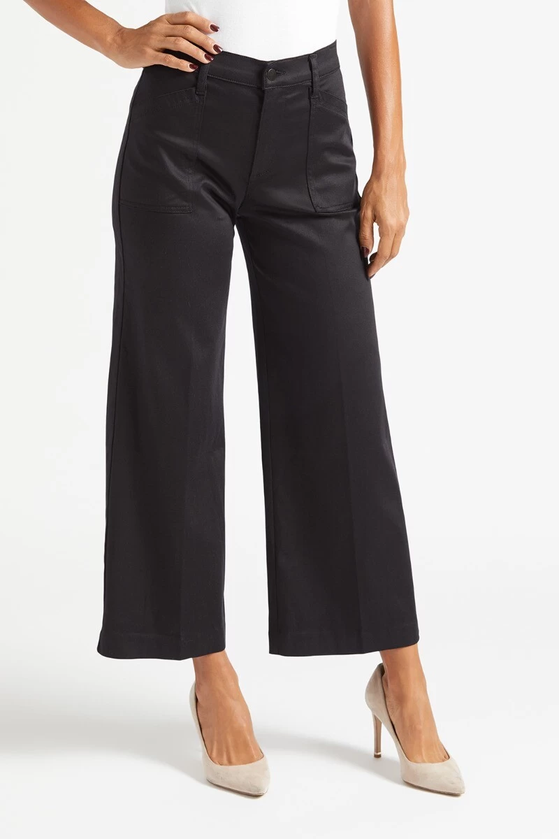 From work to weekend this modern wide leg trouser will Instantly update your look. Cotton blend sateen fabric and slant pockets provide an uber-flattering fit while the cropped length allows you to go from daytime to dinner with the switch of a shoe.