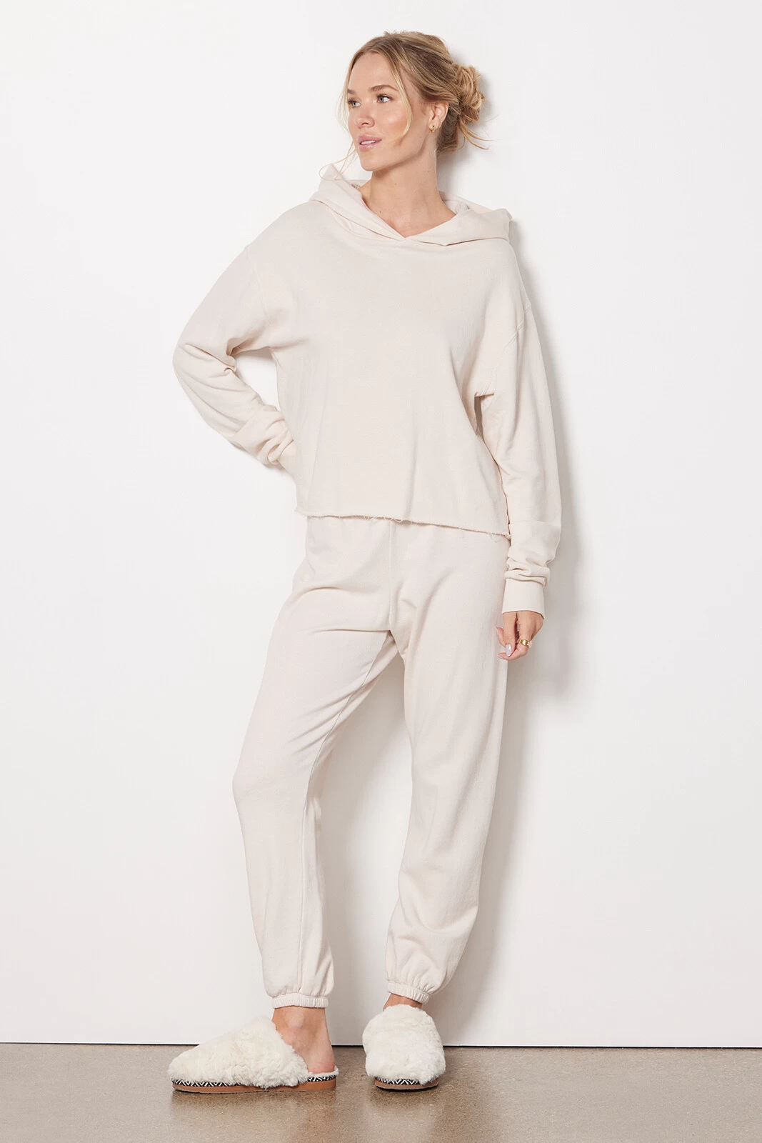 Channel a casual-cool vibe in this French terry hoodie by perfectwhitetee. This essential sweatshirt features a raw edge hem, dropped shoulders, and a relaxed, slightly cropped fit. Pair with jeans or leggings, or the matching Johnny Jogger for a comfy-chic set.