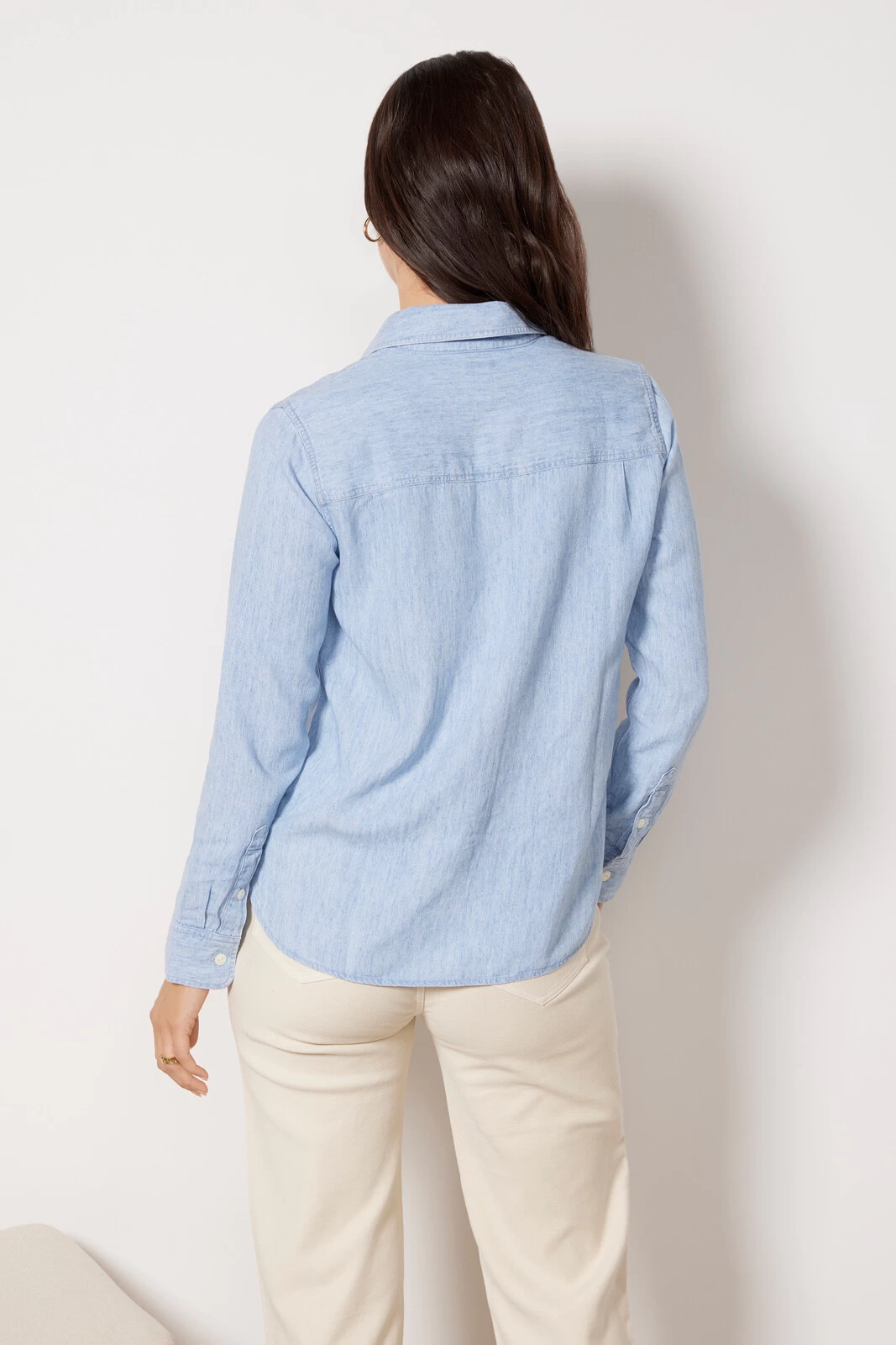 A lightweight denim fabric brings an easy, effortless feel to this Faherty button-down. Perfect for spring, this chambray shirt features a straight fit, shell buttons, and two chest pockets. Pair with utility trousers, or tuck into blue jeans for a monochromatic look.