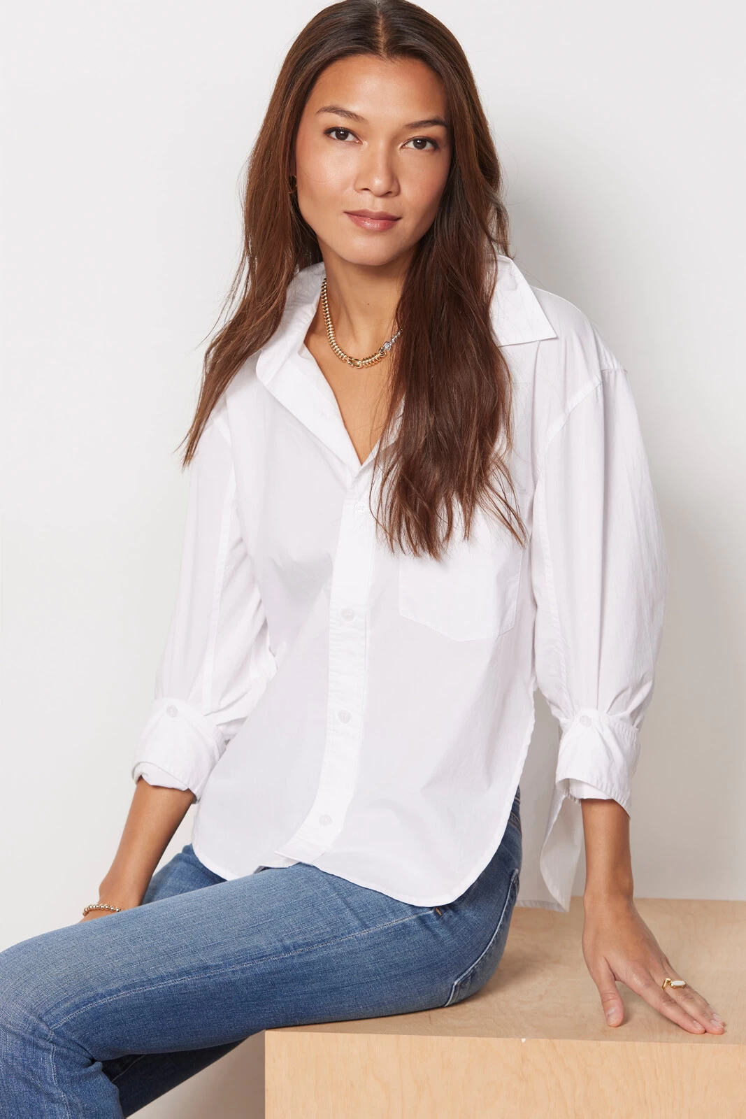 A slim fit and shorter length update the endlessly versatile Kayla shirt by Citizens of Humanity. This classic button-down is crafted in crisp cotton with high side slits and a left chest pocket. Pair with jeans or layer with a sweater for an effortlessly polished look.
