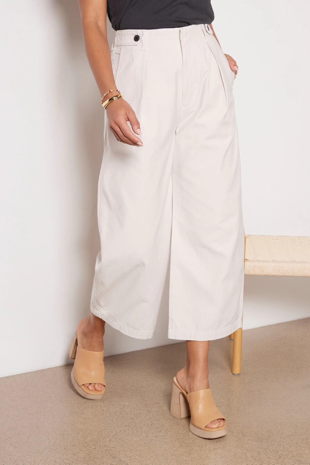 These chic wide leg trousers by Citizens of Humanity are crafted in lightweight cotton twill and feature a pleated high-rise waist with button tabs. The voluminous wide leg is cropped to a just-right length for showing off your shoe game from office to evening.