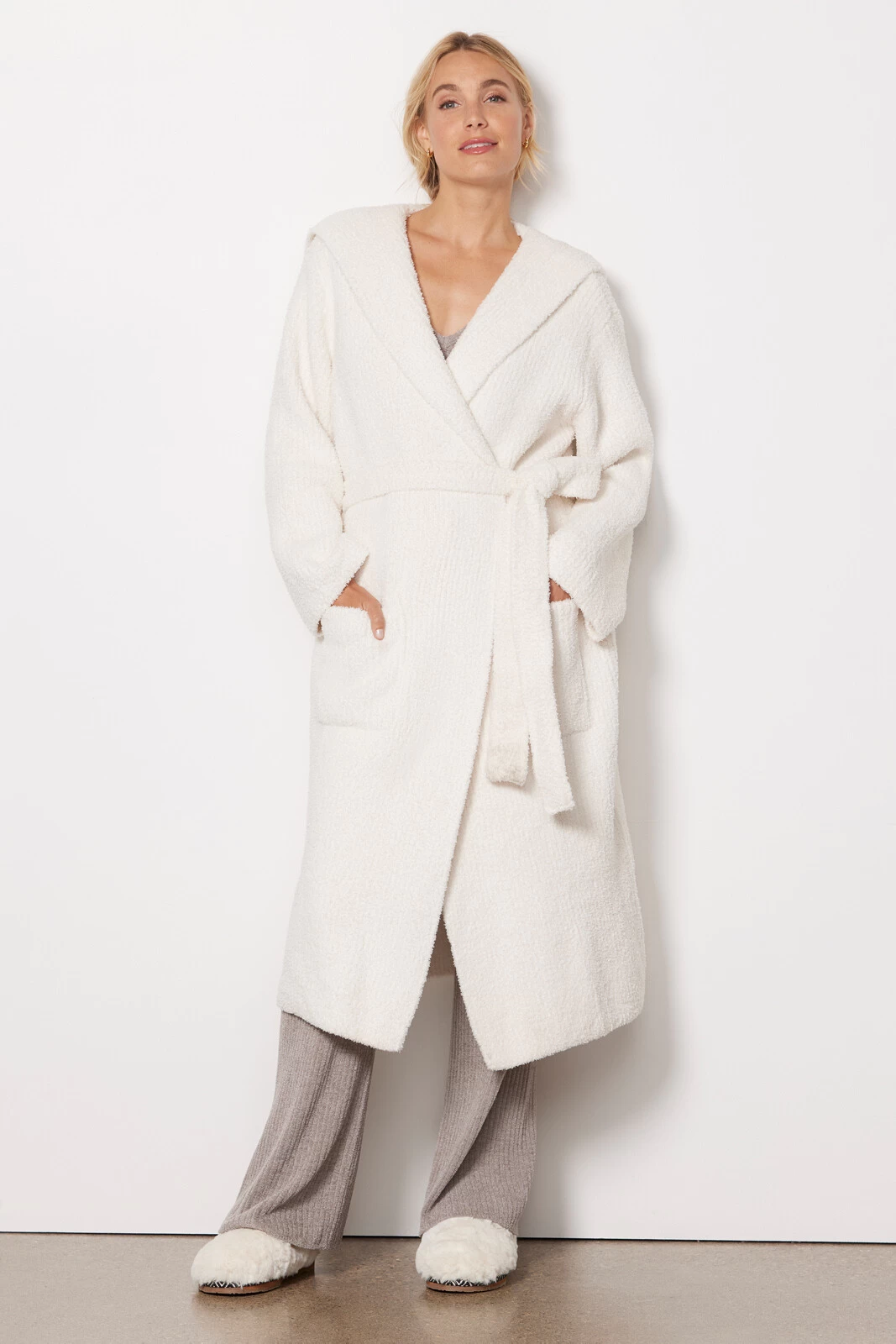 Wrap up in this luxuriously soft robe by Barefoot Dreams. Knit from their signature microfiber fabric, this plush robe features a hood, tie belt, and front pockets—perfect for keeping cozy at home.