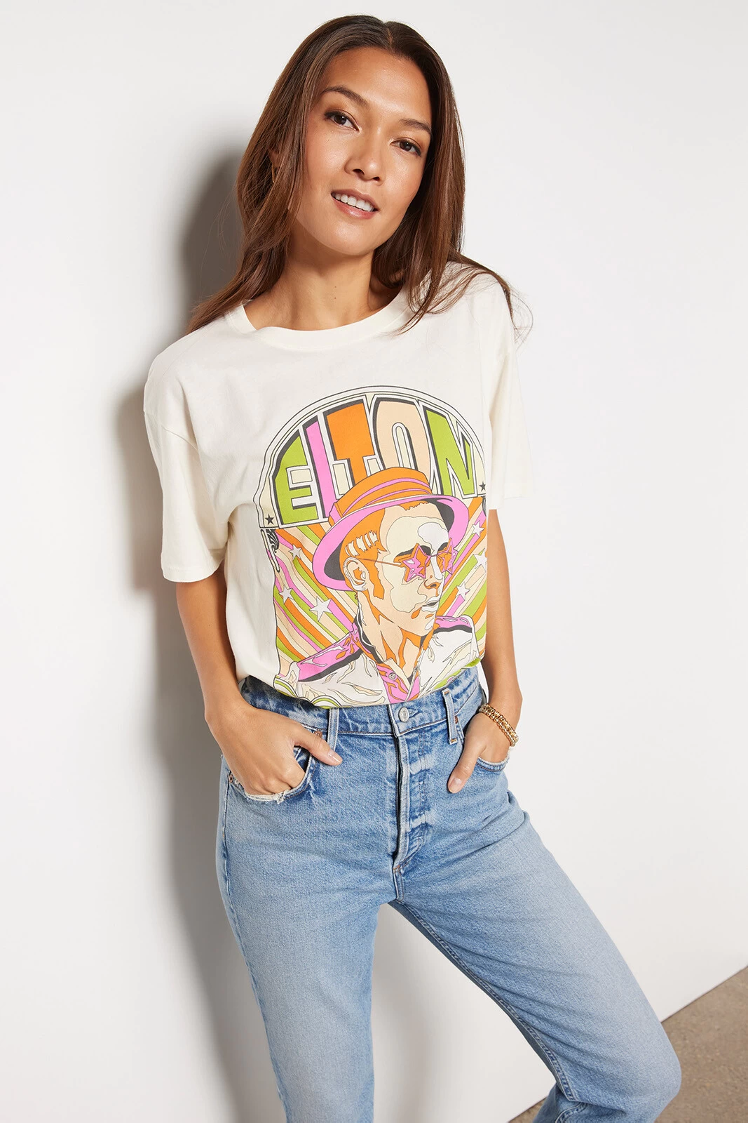 Rock this vintage-inspired Elton John tee by Daydreamer. A retro-style graphic adorns this classic crewneck tee featuring short sleeves and soft cotton fabric. Pair with jeans, utility pants, or joggers for a stylish, laid-back look.