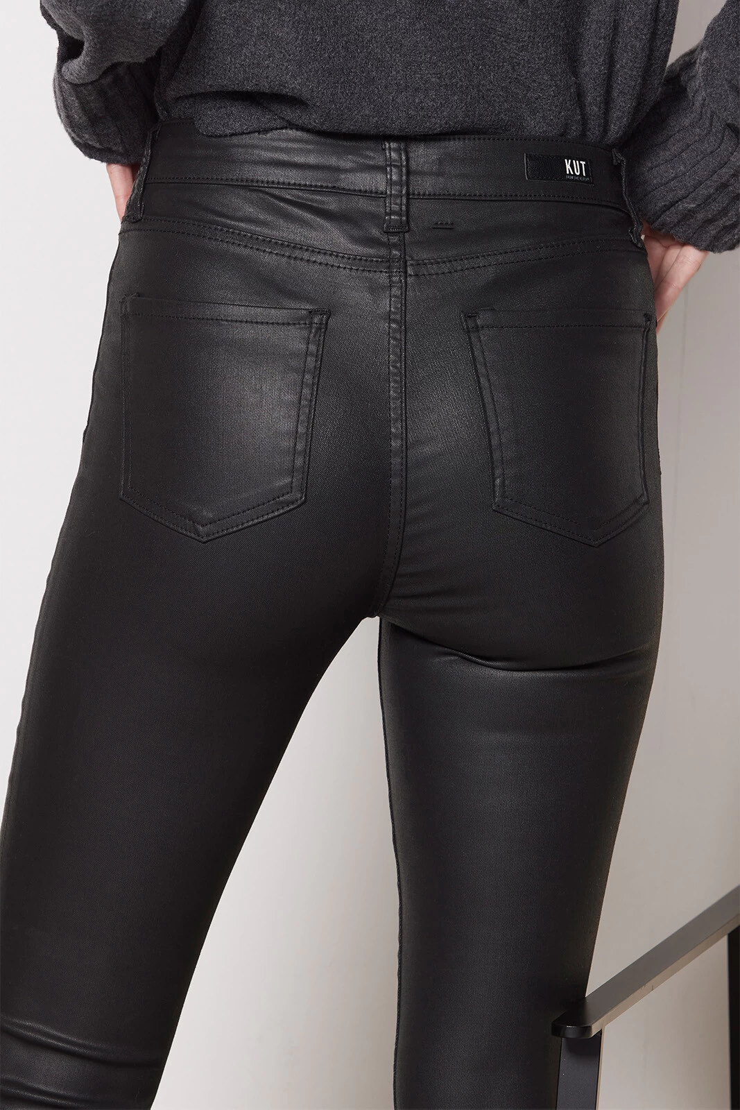 Sleek and sassy, the Coated Mia Skinny jeans will bring any look up a notch. Featuring an exposed button placket with matte black buttons for a cool monochromatic vibe. Pair with a sweatshirt and sneakers for a laid-back look.