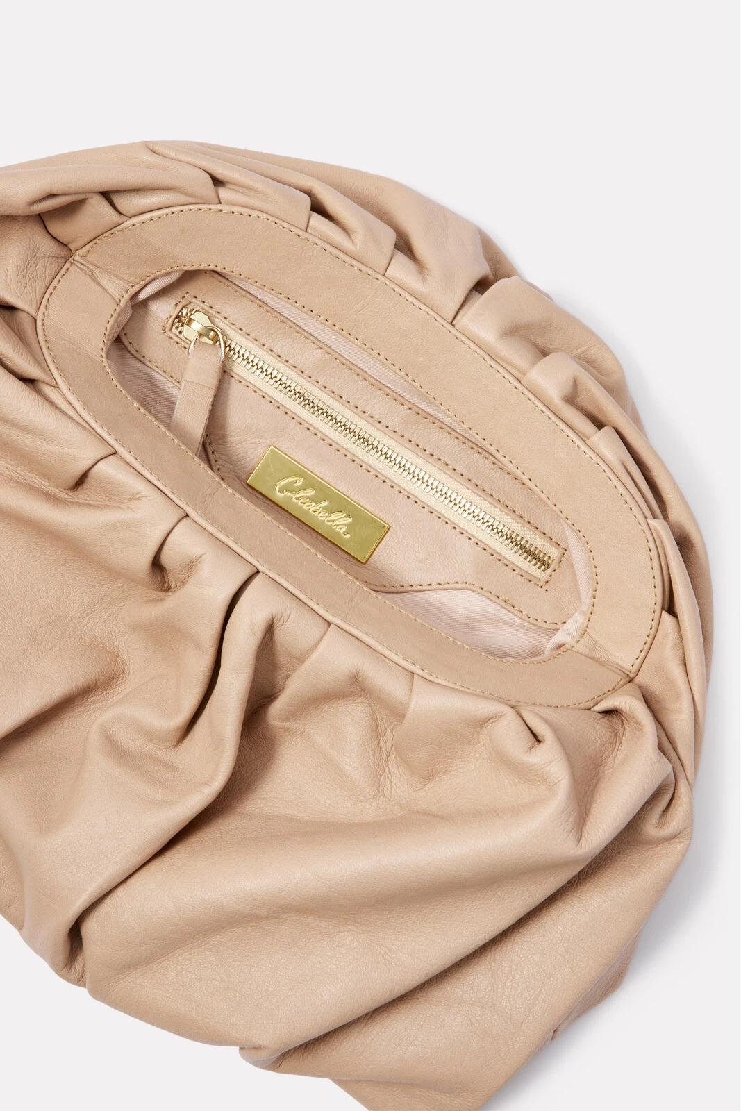 Carry your essentials from daytime to date night in this stylish Cleobella clutch. Crafted in soft neutral leather, this versatile bag features a magnetic closure, interior zip pocket, and gathered design that adds a chic touch to any look.