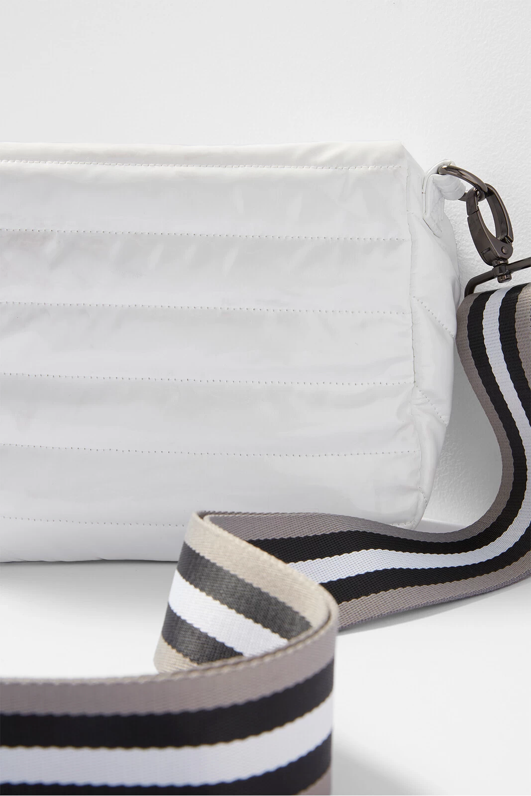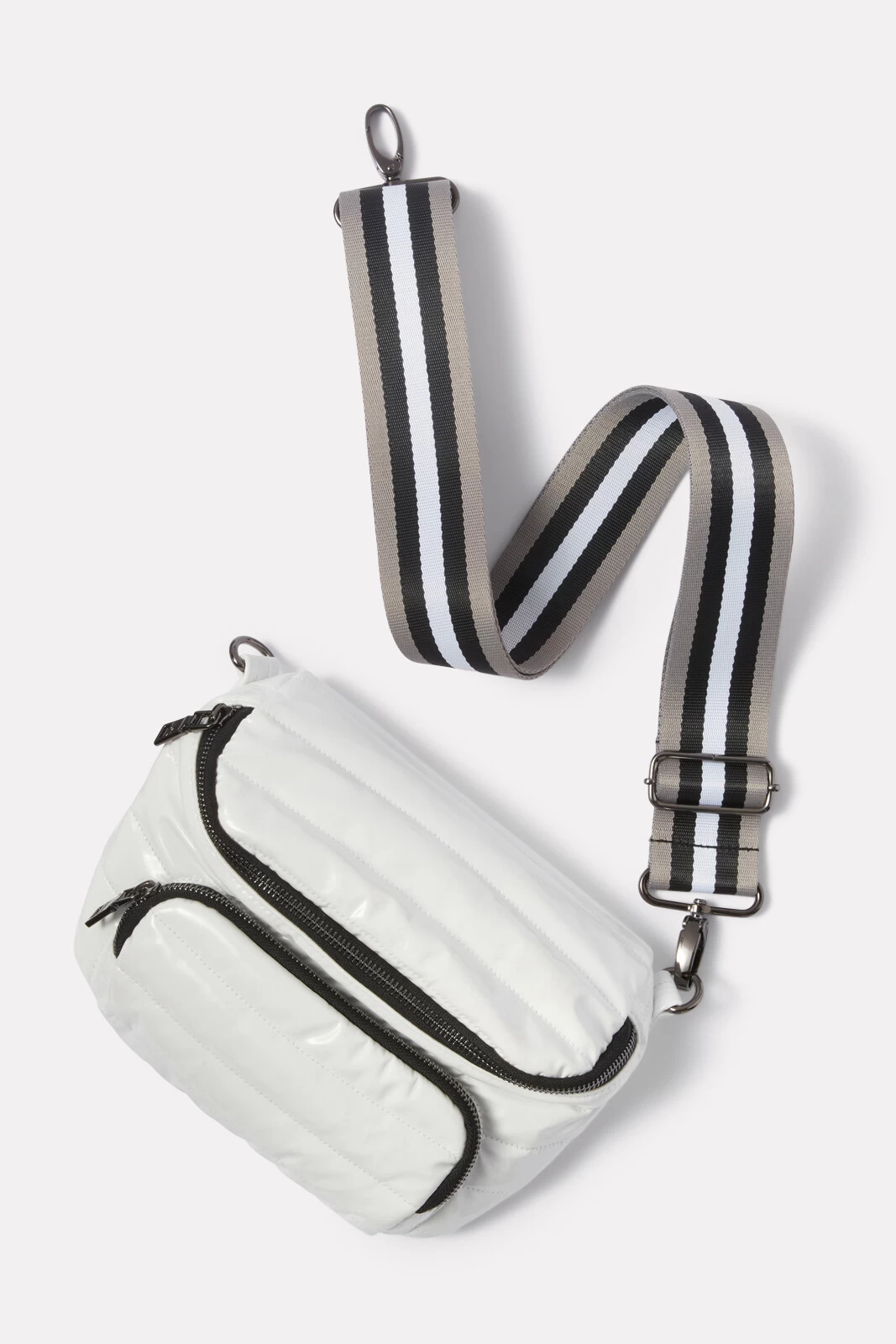 Worn as a fanny pack or crossbody, this Think Royln bag is the most stylish way to go hands-free. This sleek quilted design features a main zipper compartment, front zipper pocket, and adjustable strap that can be worn around the waist or on the shoulder.