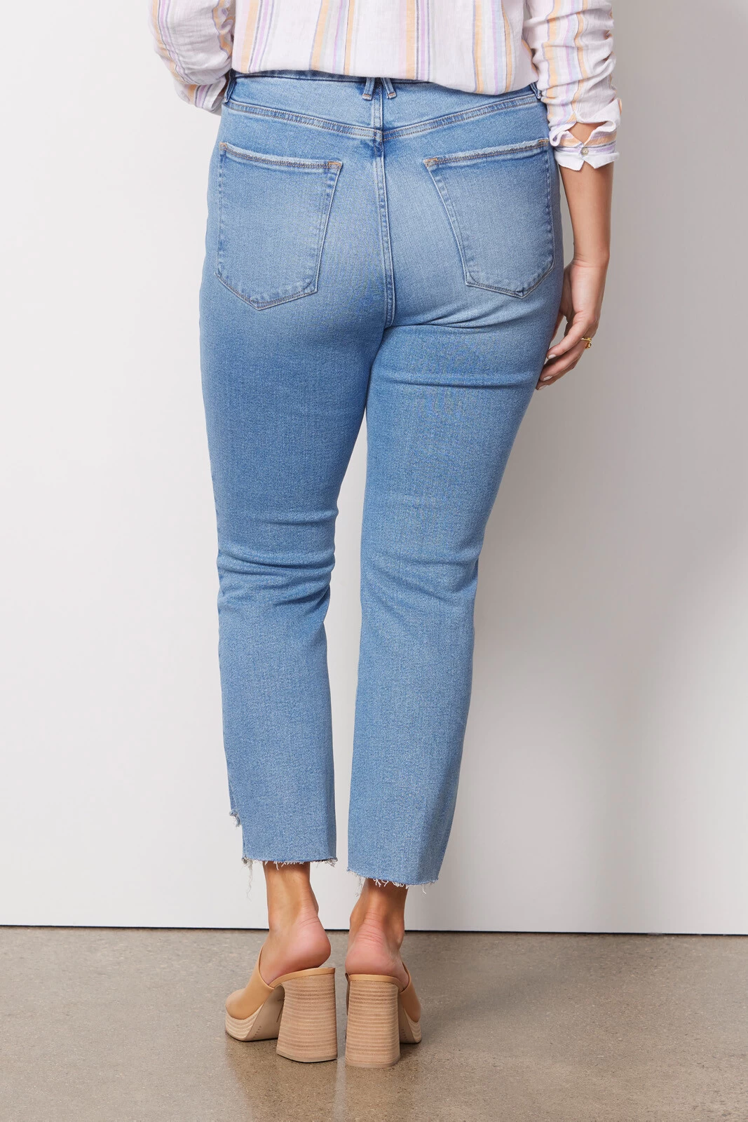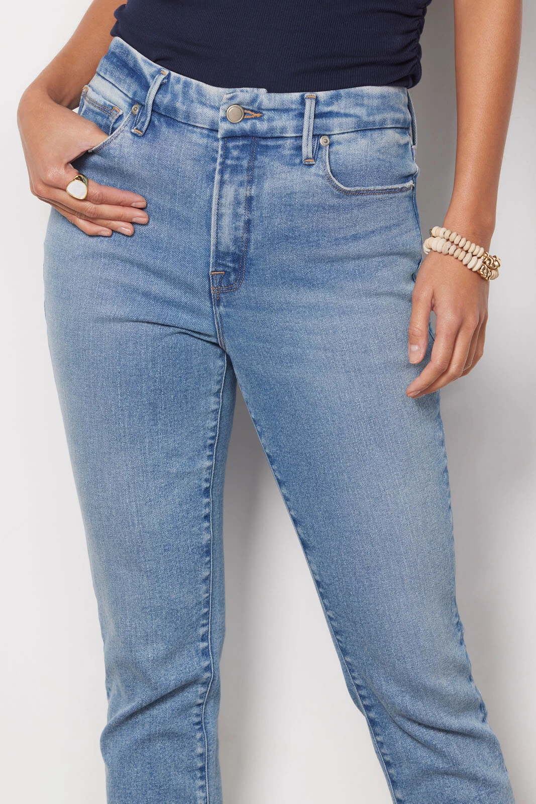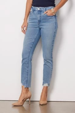 These flattering high-rise jeans feature ankle-length hems and a modern cigarette leg—fitted through the hips and thighs with a straight cut from knee to ankle.