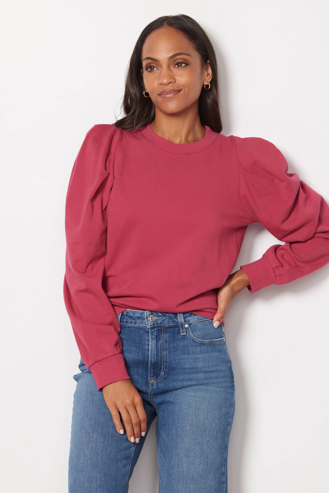 Pleated puff sleeves take this Z Supply sweatshirt up a notch. As comfortable as it is chic, this stylish pullover features a crewneck silhouette with ribbing at the collar, cuffs, and hemโperfect for pairing with everything from jeans to wide leg trousers for an elevated casual look.