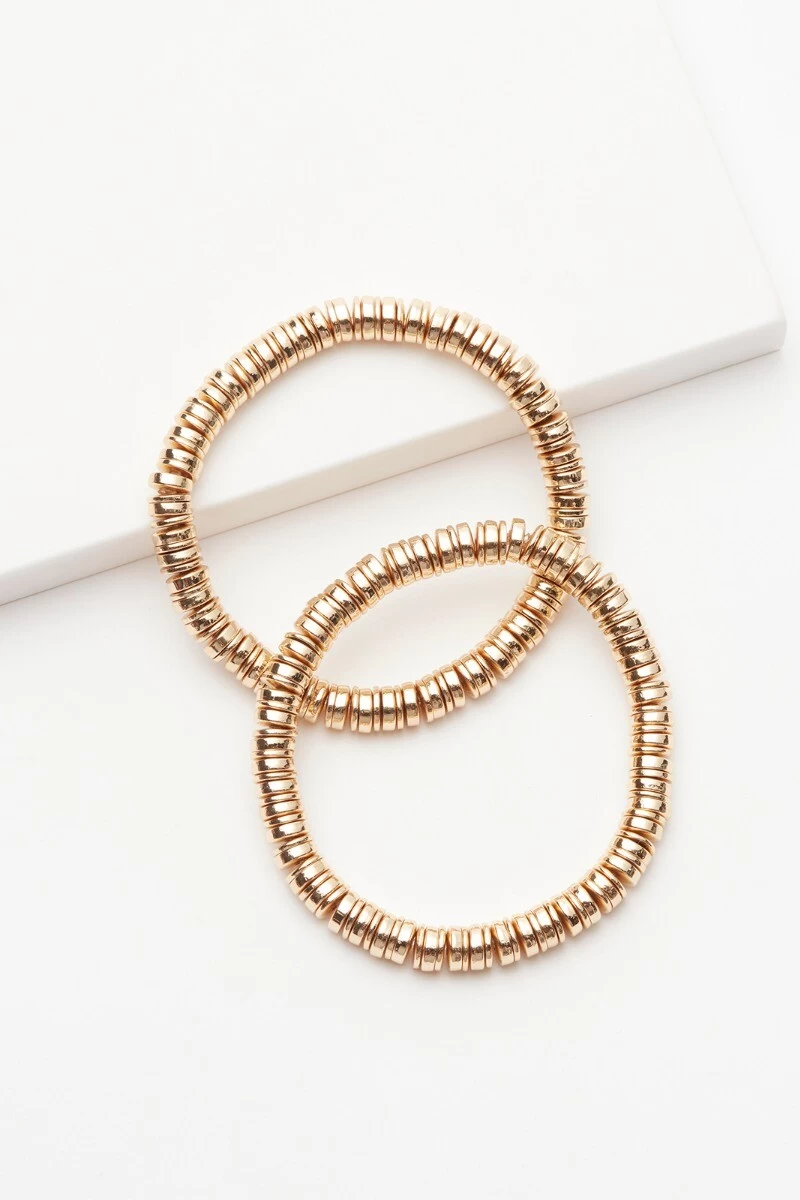 Highlight your wrist with these shimmery EVEREVE bracelets, featuring a versatile gold-tone finish and stretch elastic for easy on-and-off.
