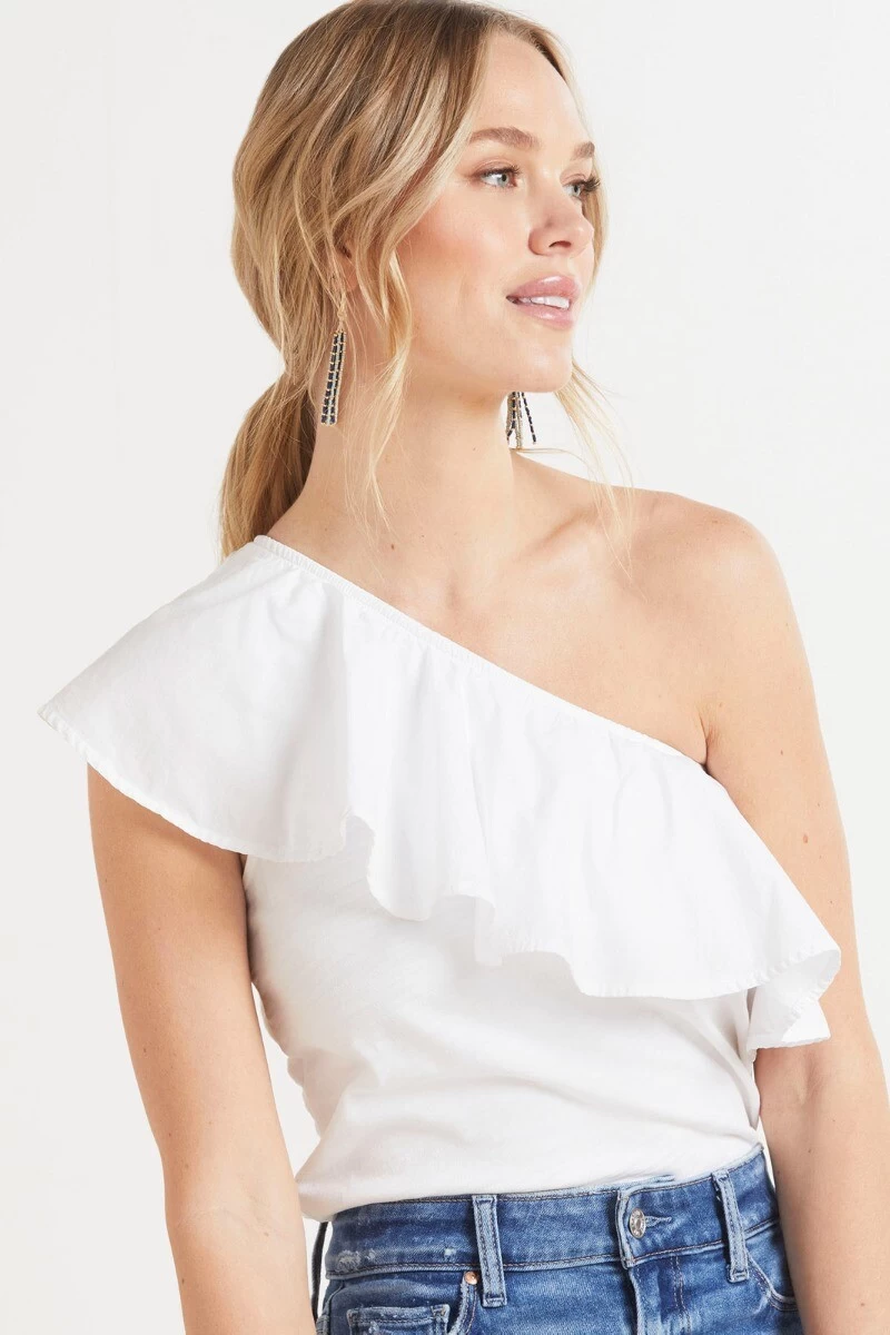 Summer-ready and oh-so-chic, the Noella top features an asymmetrical ruffle that adds all the drama while the knit body keeps this tank comfortable and cool. Pair with jeans or cutoffs for a bold summer look.