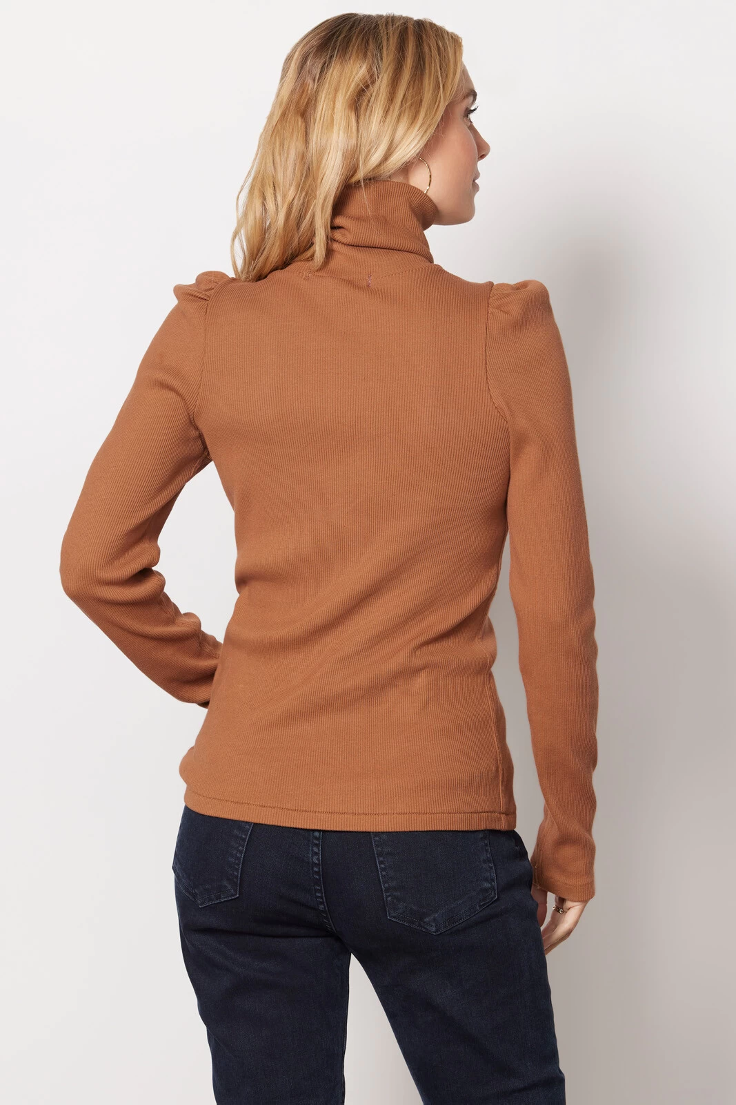 Perfectly puffed shoulders elevate this essential AMO tee featuring a turtleneck silhouette and soft rib knit fabric. Layered with a shacket or tucked into denim, you’ll be wearing this stylish staple on repeat.