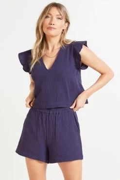 Cut from a cotton gauze fabric, the Miley top by Rails is a warm-weather staple. Featuring a cropped silhouette with flutter sleeves and a flattering v-neckline. Pair with high-rise cutoffs, or complete the matching set with the Leighton Short.