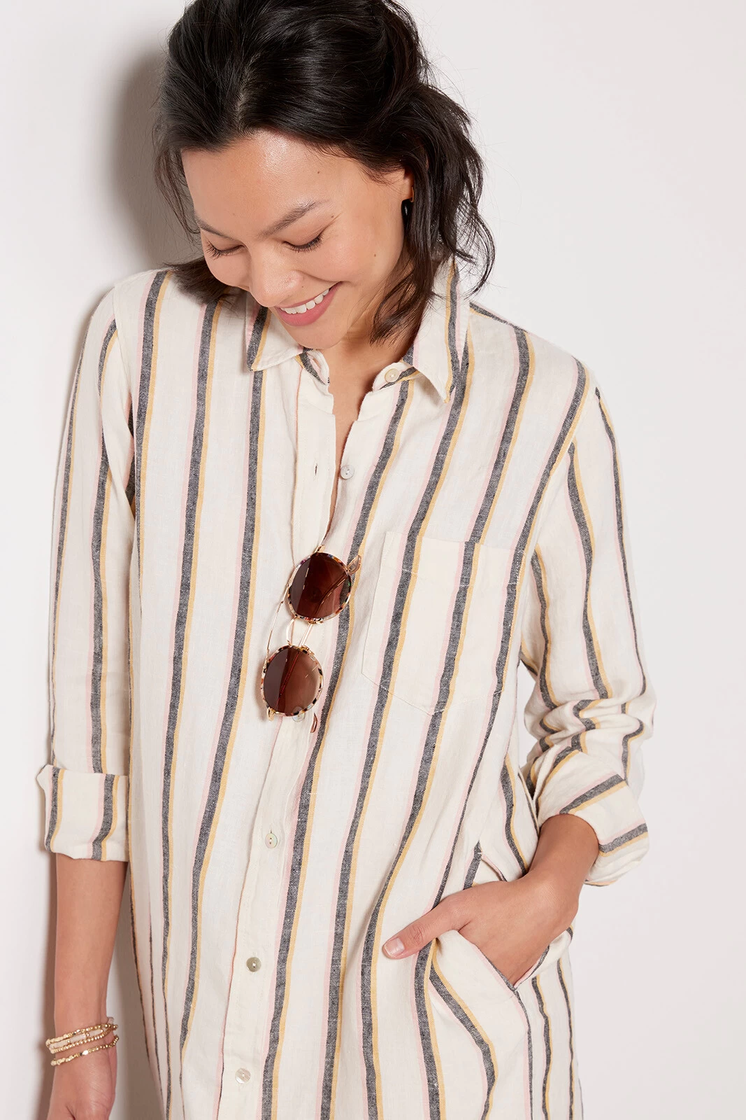 Slide from brunch to beach day in this striped shirtdress by Rails. Finished with side pockets and a split hem, this button-front midi dress is crafted in airy linen for a breezy, wear-everywhere feel.