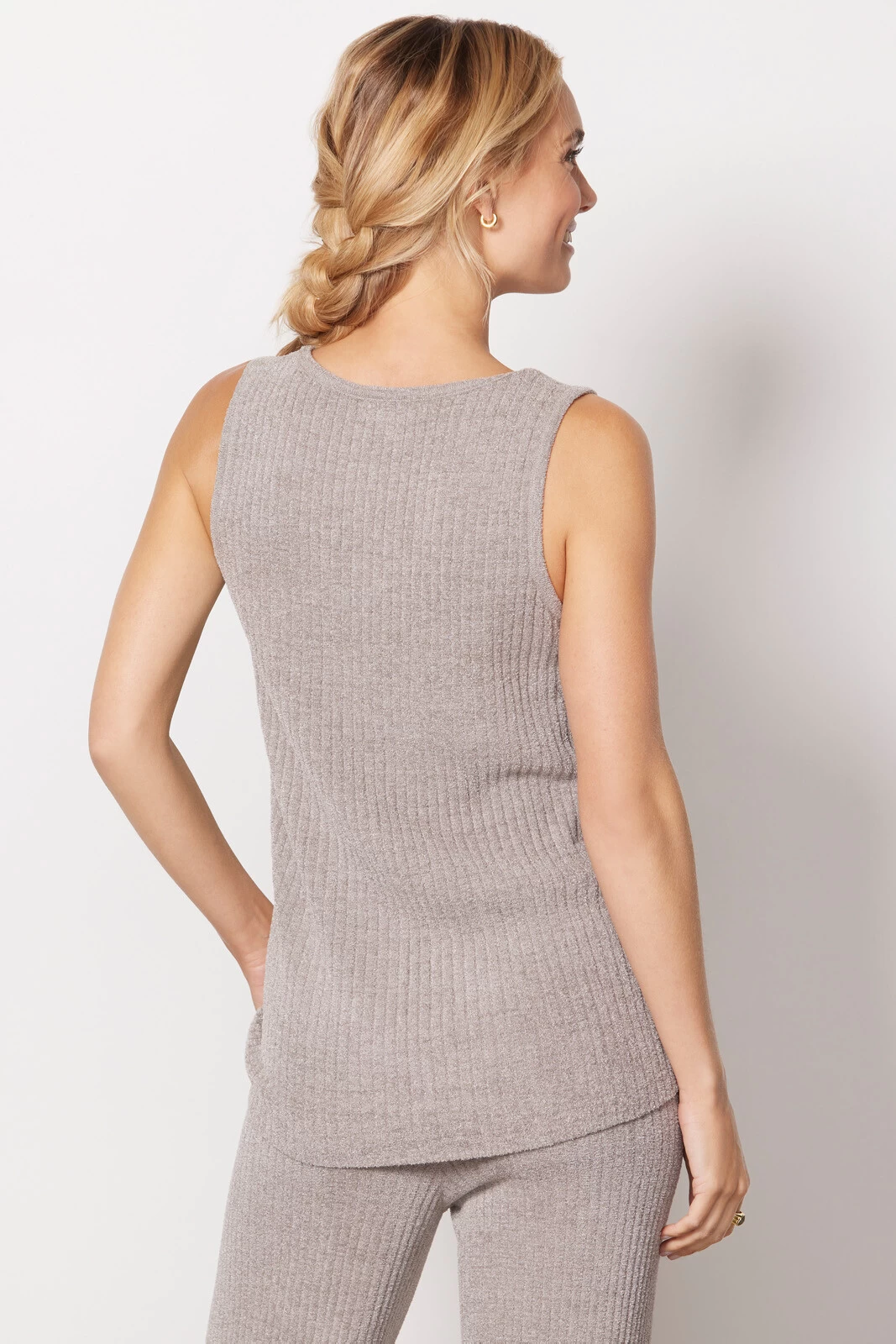 Take your loungewear to the next level with this ultra-soft set by Barefoot Dreams. Crafted in the coziest rib knit fabric, this set includes a sleeveless v-neck top and wide leg pants with an adjustable drawstring.