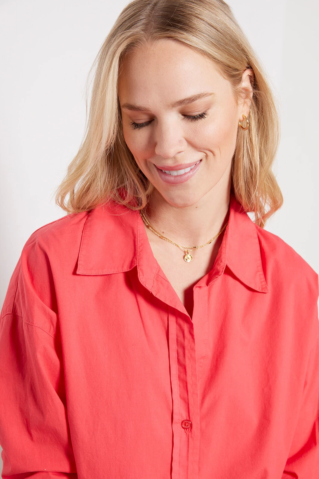 Elevate your spring-to-summer wardrobe with this stylish Monrow button-down. This stretch poplin shirt features a relaxed fit, curved hem, and pleated back detail. Tuck into jeans or trousers, or pair with the matching Poplin Paperbag Shorts for a weekend-ready look.