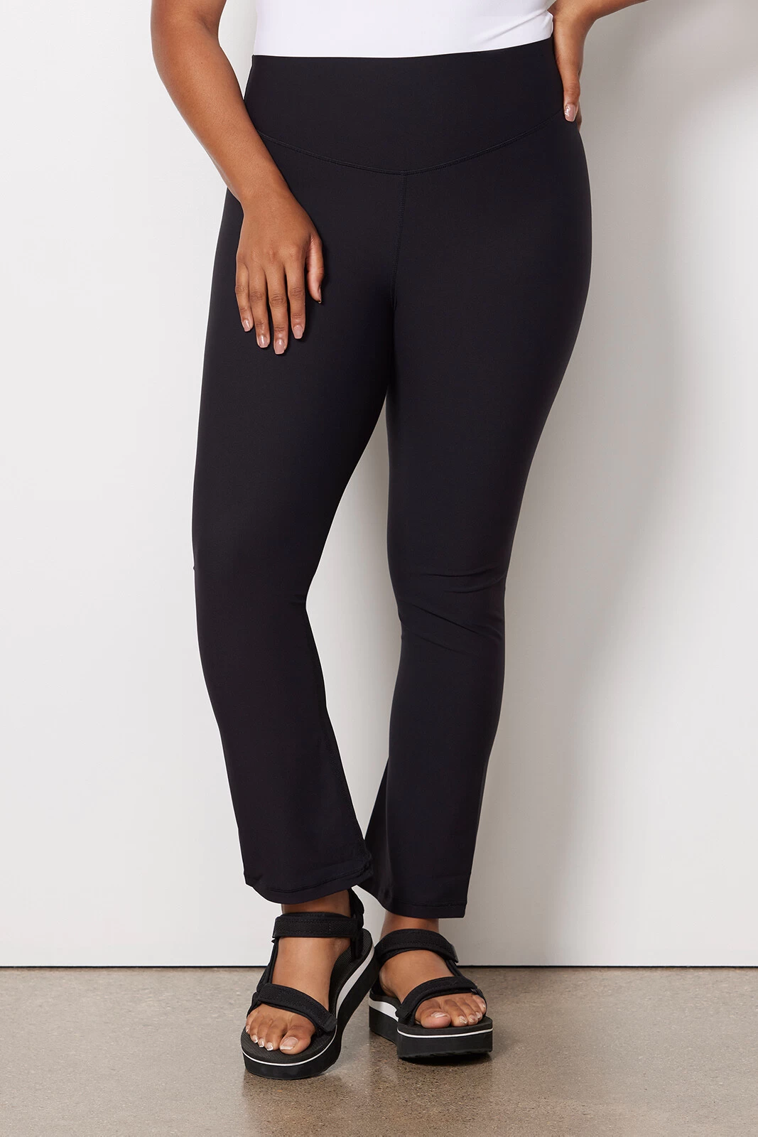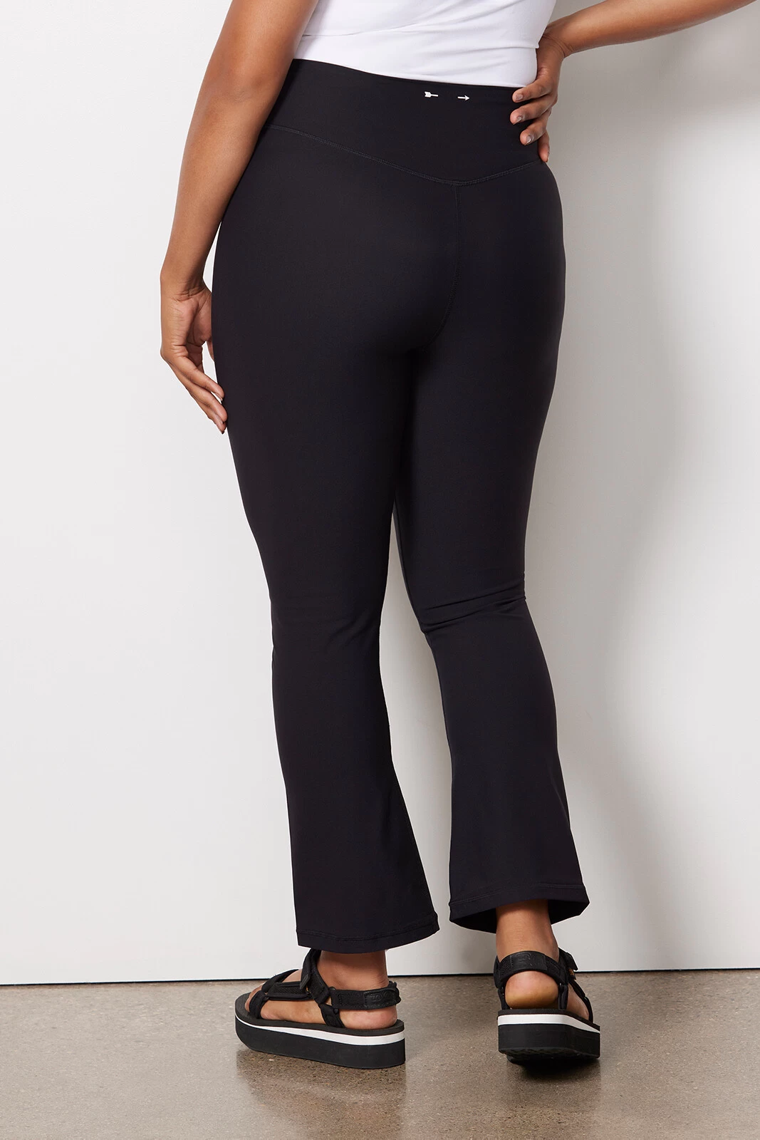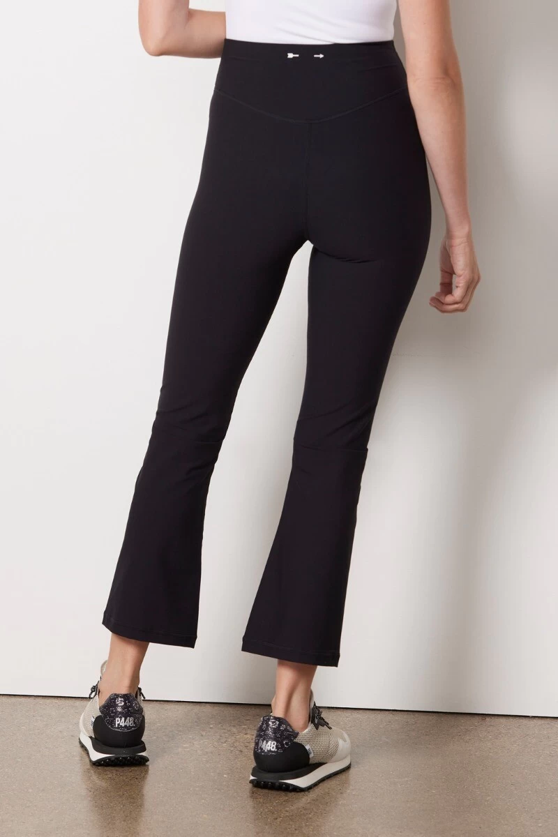 Comfortable, chic, and oh-so-versatile. These figure-hugging pants by The Upside feature a flared silhouette with a supportive, high-rise waistband and ankle-length hems—perfect for sliding from barre class to brunch with ease.