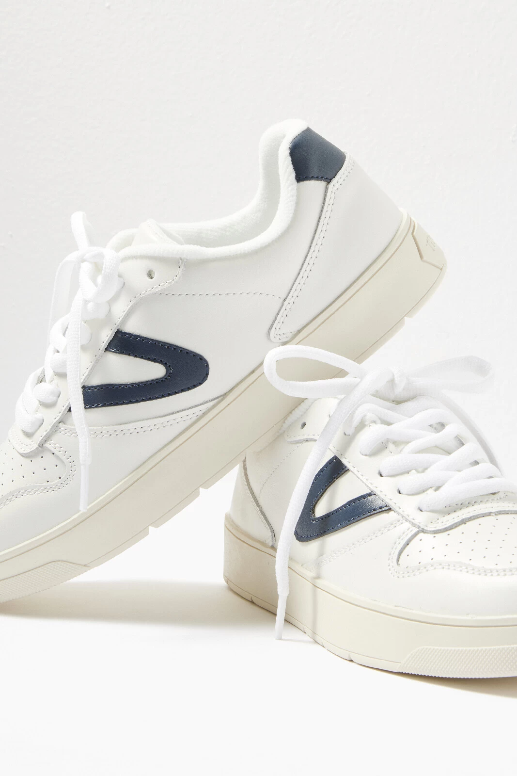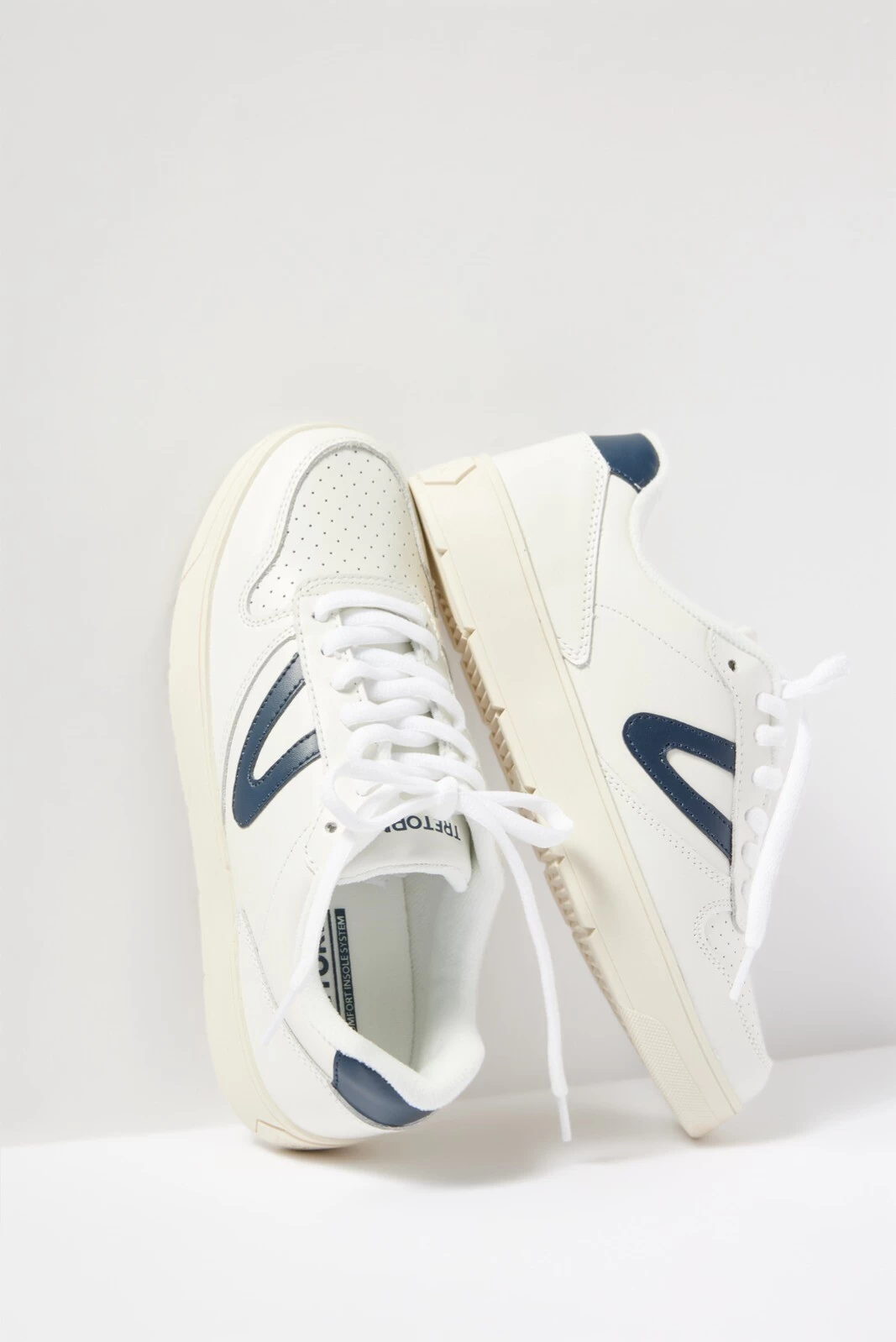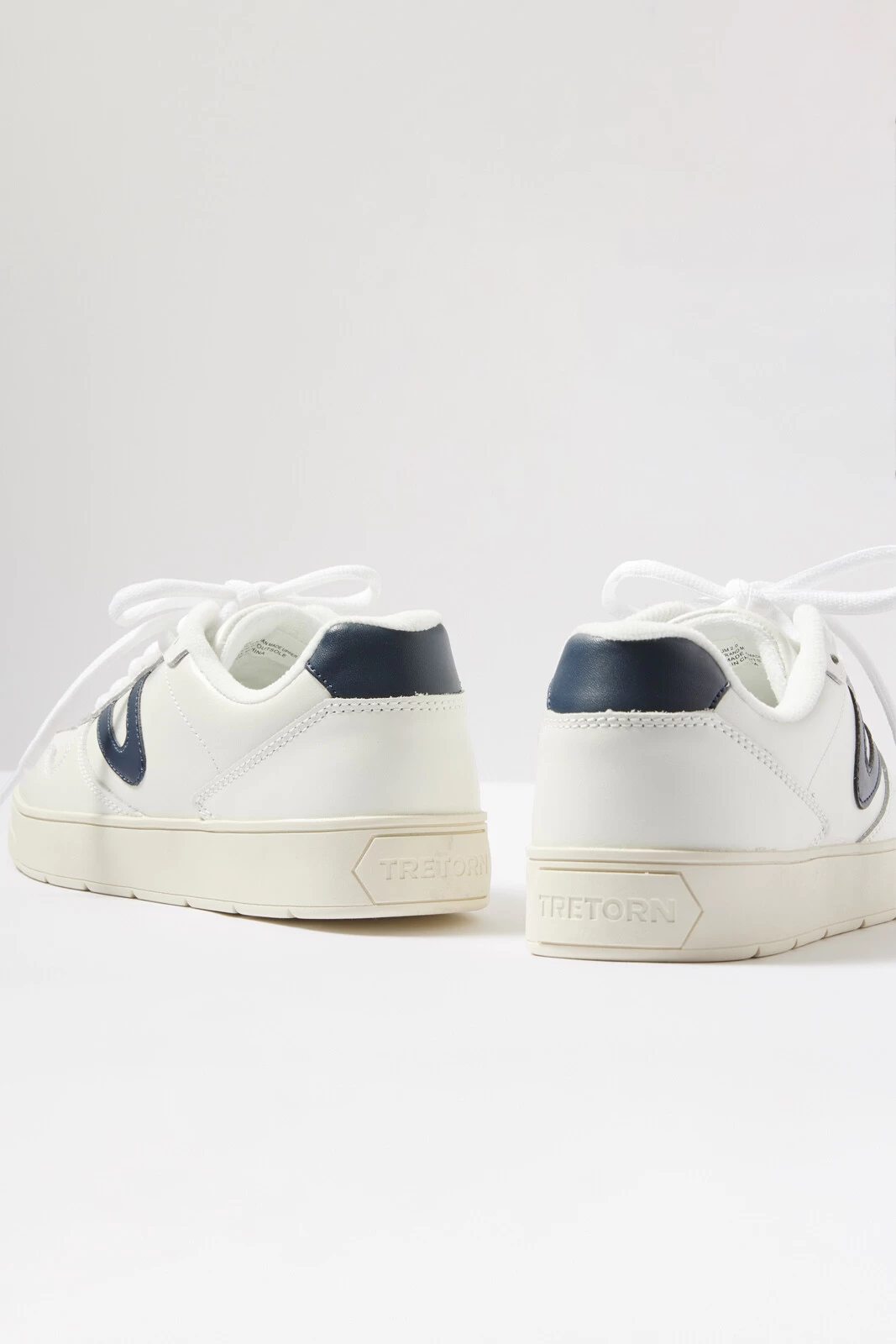 Sleek, sporty styling defines these versatile Tretorn sneakers. Crafted in smooth white leather, these classic low-tops feature a comfortable foam footbed and a contrasting logo and heel tab for a pop of color.