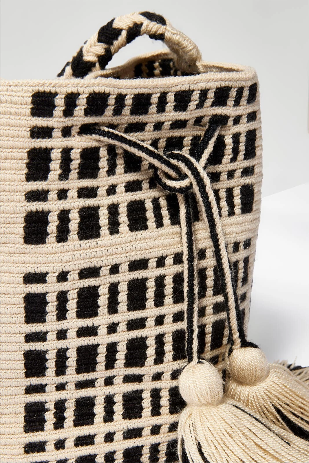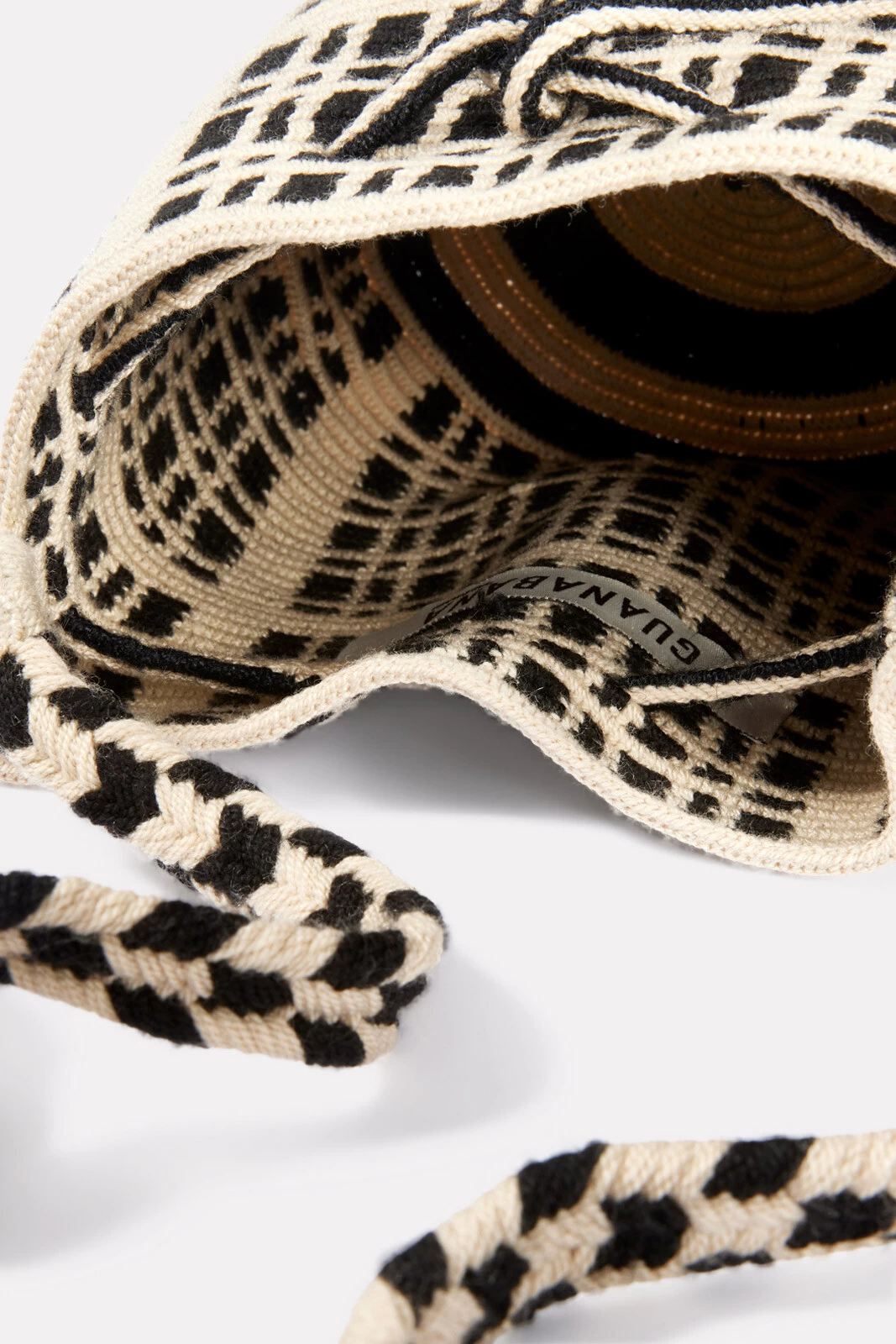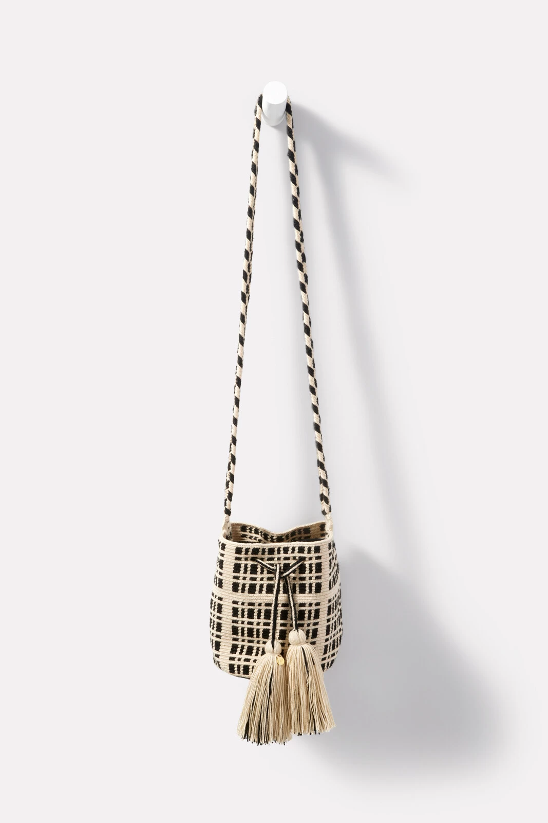 A woven geometric design defines this chic crossbody bag by Guanabana. Hand-crocheted by Wayuu artisans, this bucket-style bag is finished with a braided crossbody strap and tassel drawstring closure. The just-right size is perfect for your everyday essentials.